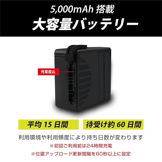 【大容量電池搭載】5000mAh電池内蔵、1分間隔発信で、最長1ヶ月以上持ちます。(利用頻度によります・目安1日100ポイントの取得で30日前後)