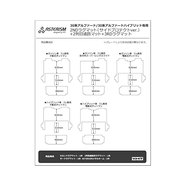 ASTERISM30系アルファード ガソリン車 S-Cパッケージ 2NDSP+3RD+2列目通路マット ブラック AST-30AL-2NDSPL-KRH-