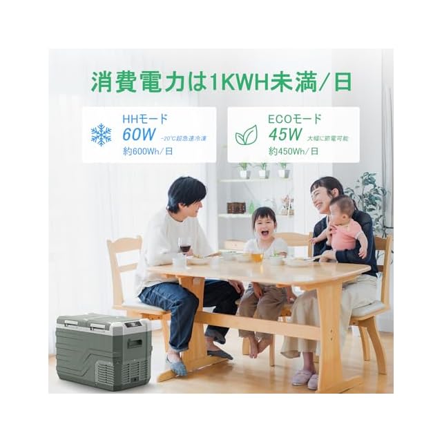 【-20℃強力な冷却性能と低騒音】車 冷蔵庫は家庭用冷蔵庫と同じコンプレッサー方式を採用しているので、速くよく冷えるだけでなく、静かで省エネです。強力なコンプレッサーによる急速冷凍機能を備えていますので、15分で庫内を0℃にすることができます。また、急速冷凍対応のMAXモード、省エネ対応のECOモードの2つのモードを使い分けることができます。