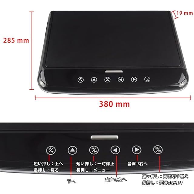 【新設計フリップダウンモニター★超薄デザイン】IPS液晶搭載 14インチフリップダウンモニター、スリムデザインで使わない時は、コンパクト収納可能!たった19mmだけ薄型設計、軽自動 車から普通車まで幅広く対応!ちょうど良い画面サイズで気軽に車内でテレビやDVDを楽 しむことが出来ます♪
