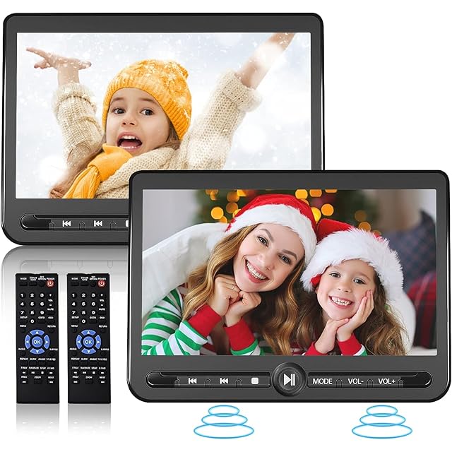 ARAFUNAヘッドレストモニター 10.1インチ 車載DVDプレーヤー2台セット 車載用 後部座席 リージョンフリー 三つ給電式 同じ/別々に映像の再生可能 バッテリー内蔵 5時間再生可能 CPRM/AV/USB/SDカード対応