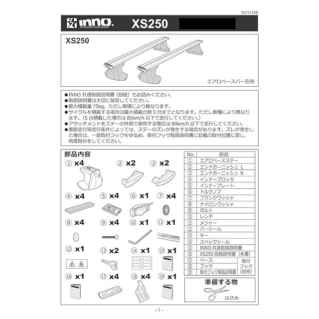 ※取付けには別途エアロバー2本、車種別取付フックが必要です。別途お買い求めください。
