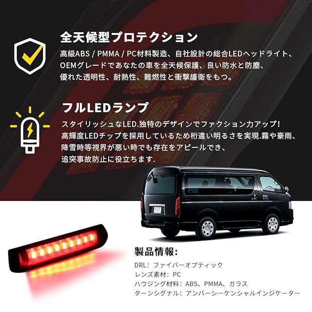 【適合車種】トヨタ ハイエース レジアスエース 200系 1型 2型 3型 4型 5型 6型 2005-2018 年 スモーク色 左右ハンドル汎用仕様