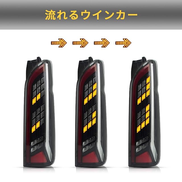 VLAND トヨタ ハイエース 200系 テールランプ 1~6型 流れるウインカー レジアスエース LED テールライト 2005-2018年 スモーク For Toyota Hiace Taillights 2005-2018