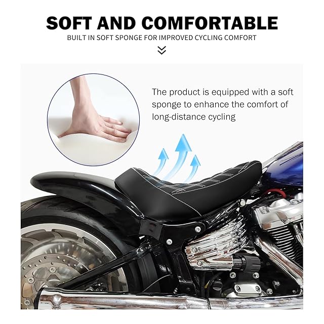 4.【 ソロ シート の斬新なデザイン】:低くワイドなカットでデザインされています。 ヒップ部分に余分な幅を提供します。より低い高さで乗ることができるだけでなく、凹凸のある路面の振動からライダーの腰を効果的に保護できます。
