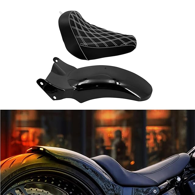 HDBUBALUS バイク シート クッション リアフェンダー フレーム フェンダー LEDライト付き オートバイ フロント ソロシート ワイド 泥除け マッドガード ショートフェンダー ハーレー 用 ブレイクアウト FXBR FXBRS 114 107 用 2018-2024 ブラック