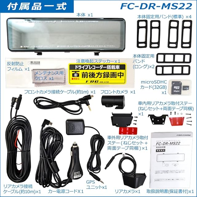 エフ・アール・シー (F.R.C) 日本製 ドライブレコーダー ミラー型 セパレートタイプ 2カメラ FC-DR-MS22A 前後とも200万画素 GPS付属