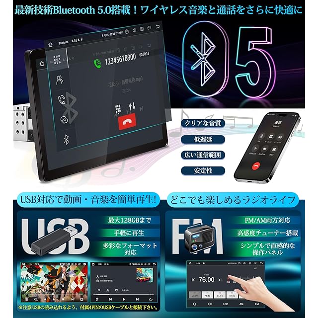【高速かつ安定のBluetooth 5.0】Bluetooth 5.0を搭載し、従来のバージョンよりも高速で安定した接続を提供します。音質の劣化が少なく、クリアで豊かなサウンドを楽しむことができます。また、Bluetooth電話機能を搭載し、ハンズフリー通話が可能です。運転中でもスマートフォンに触れることなく、音声で通話の応答や終了ができます。【DSP音響調整で極上の音質体験】PRA106カーオーディオに内蔵のDSP(デジタルシグナルプロセッサ)音響調整設定により、車内の音響環境を最適化。低音から高音まで、細かい調整が可能で、自分好みのサウンドを作り出せます。どんな音楽ジャンルでも、クリアで臨場感あふれる音質を提供し、ドライブを一層楽しくします。【PBP-2分割画面機能搭載】android ディスプレイオーディオはPBP機能を搭載し、1つのディスプレイで2つの異なるソースを同時に表示可能。これにより、複数の情報を一度に確認できるため、運転中の利便性が大幅に向上しますね。