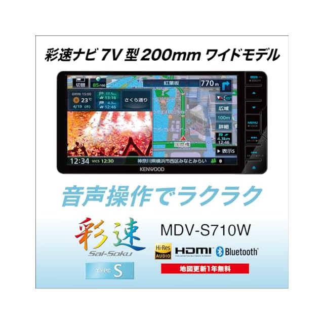 ケンウッド(KENWOOD) カーナビ 彩速 7インチワイド MDV-S710W 安心の日本製ハイコストパフォーマンスモデル デジタルルームミラー型ドライブレコーダーと連携可能