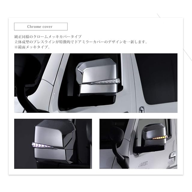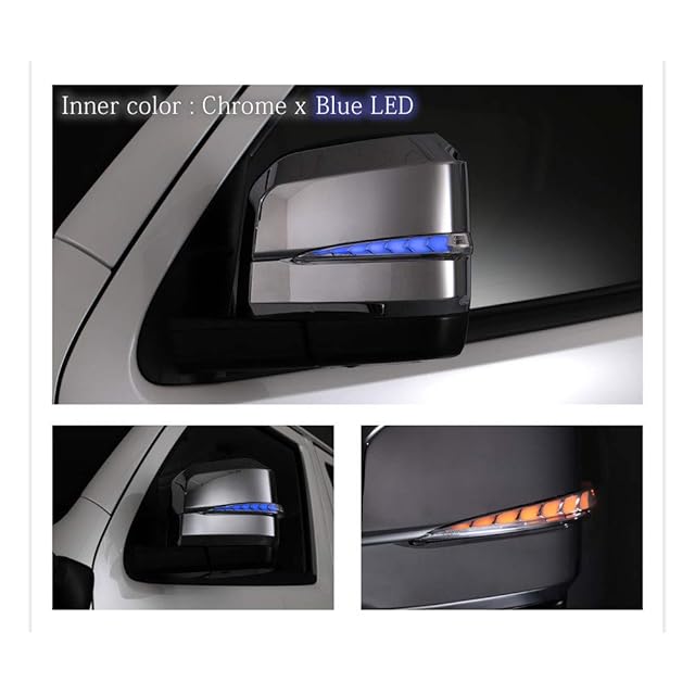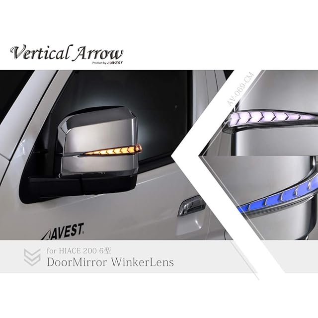 ハイエース200系 6型用 流れる シーケンシャル ドアミラー LEDウインカーレンズ付 クロームメッキカバー インナークローム×ブルーLED VerticalArrow AVEST パーツ