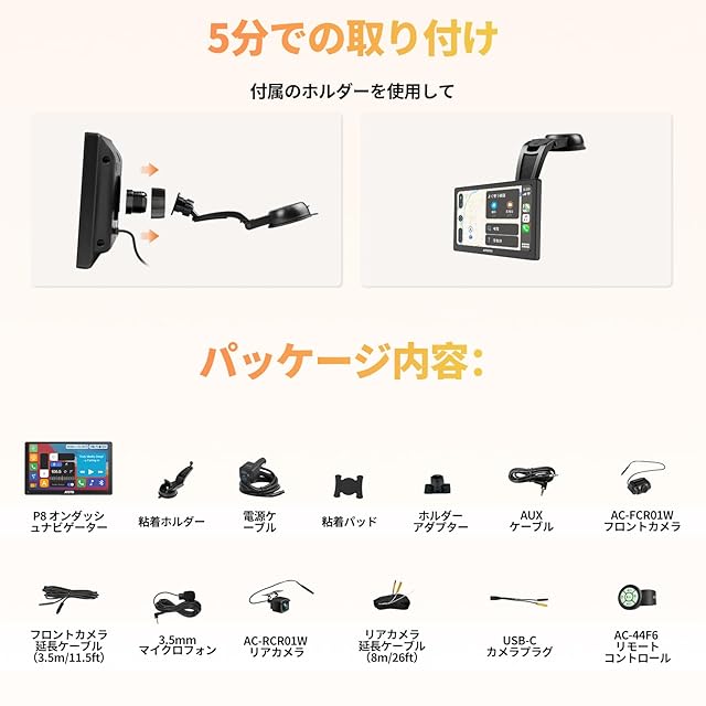 【ワイヤレスリモコンとオートディマー付き】AC-44F6ワイヤレスリモコンは、他の多くのブランドにはないP8への簡単アクセスを提供します。オートディマー機能により、運転中のP8の明るさ調整が不要になります。内蔵の光センサーにより、P8は周囲の光の変化(例えばトンネルの出入りなど)に自動的に対応します。直感的なLinuxシステムにより、主要機能を3回のタップで簡単にアクティベートできます。これにより、ドライブがより快適になります