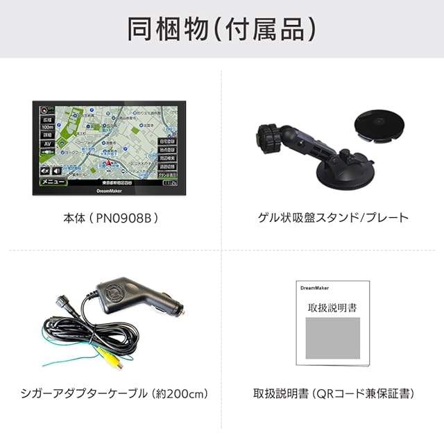 DreamMaker ポータブルナビ ナビゲーション 9インチ 2025年 ゼンリン地図 ピボット機能 みちびき バックカメラ 対応 るるぶデータ 24V対応 TVレスモデル [PN0908B]