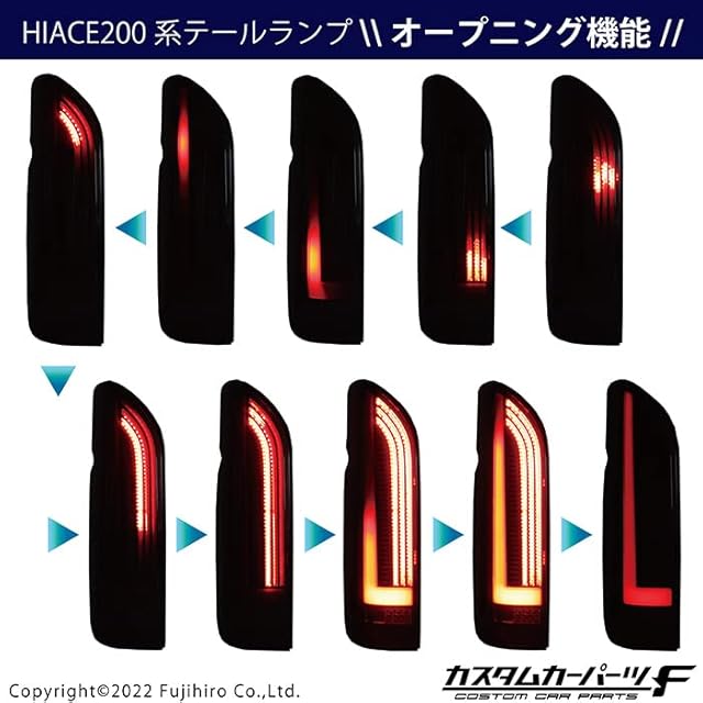 トヨタ ハイエース 200系 LED テールランプ オープニング シーケンシャル 流れるウインカー カプラーオン 反射板付 標準/ワイド DX/SGL ワゴン/バン 外装 K-T-239-HIASM