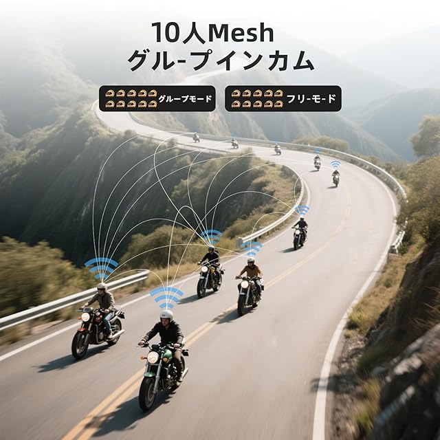 【10人同時接続 × 1秒自動ペアリング】Mesh 4.0技術でグループライディングを進化。従来のBluetooth接続の煩雑さを解消。ワンクリックで最大10台の即時接続を実現(1-3秒完了)。5チャンネル切り替えでプライバシーを確保し、通信圏内復帰時は自動再接続。リスニングモードでは人数制限なし。他社製Bluetoothインカムとも2人接続可能。