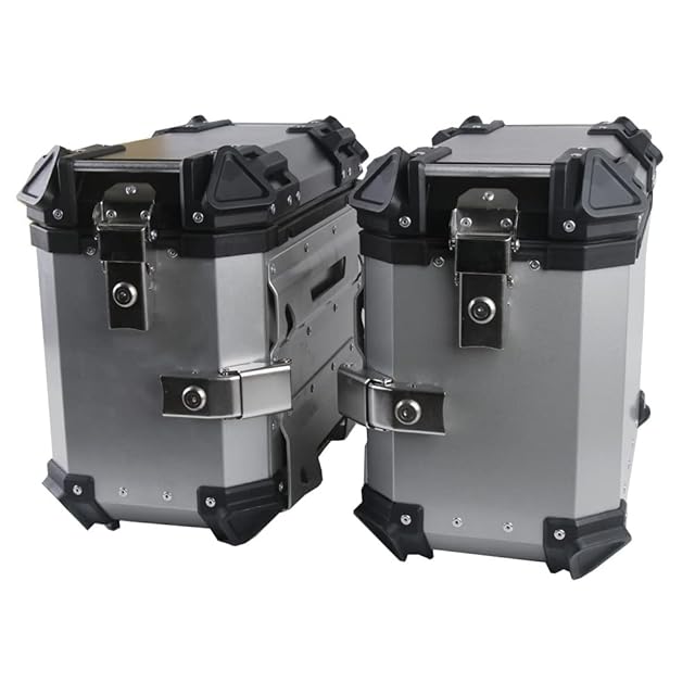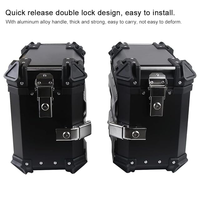 Shkalacar 1 ペア 35L ユニバーサル オートバイ サイド ストレージ ボックス アルミニウム合金 荷物ケース クイック リリース バイク サイド キャリア 防水 左右オーガナイザー 衝突防止 & 衝撃吸収 鍵4個付き