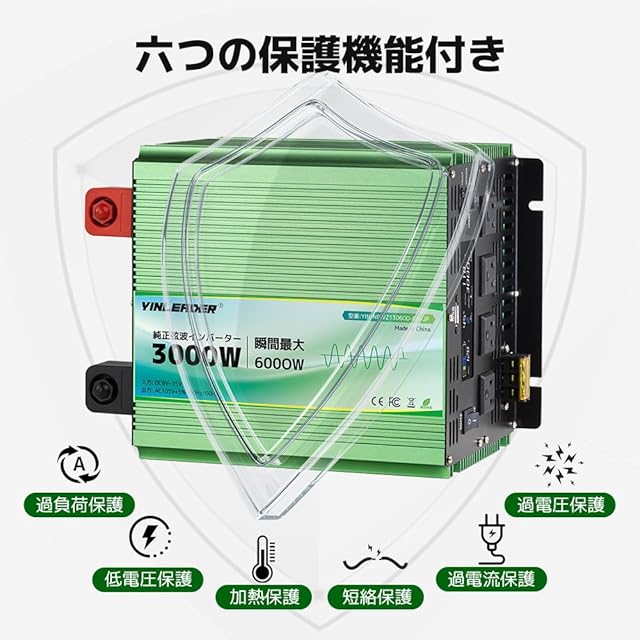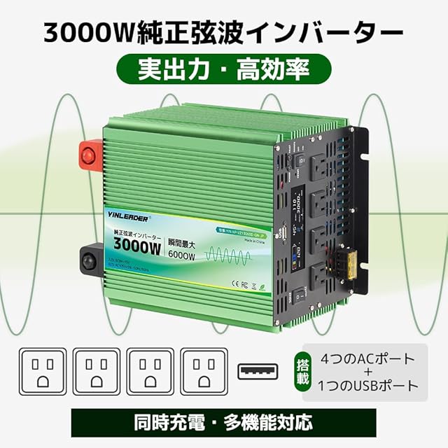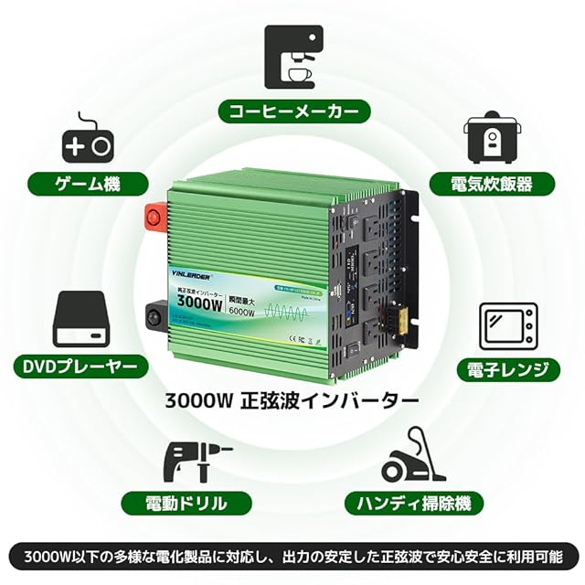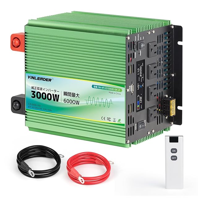 「2025最新」 Yinleader インバーター 正弦波 12V 3000W 最大 6000W DC12V(直流)AC100V(交流)入力電圧範囲: 9V-15V 出力電圧: 105V ± 5% 変換 50HZ 60HZ カーインバーター 災害対策 地震 防災用品 アウトドア 自動車 船 キッチンカー キャンピングカー 用品 キャンプ 緊急時で大活躍 停電の対策
