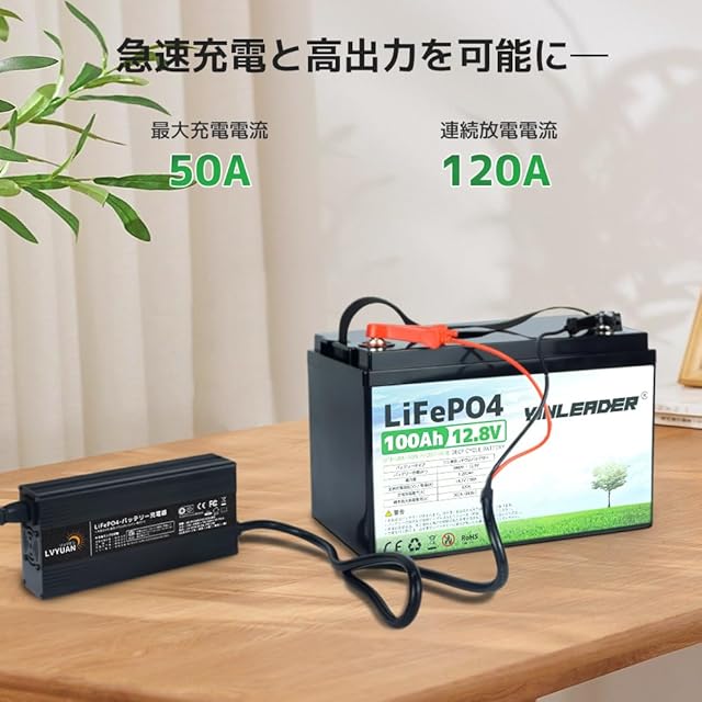 【高品質】 徹底した材料の選定と工程管理によって実現した最新の車載用バッテリーセルを使用しており、3000回以上のサイクル寿命(100%のDOD)、100Aの連続充電電流、120Aの連続放電電流、広範囲の動作温度範囲を確保し、優れた耐久性を誇ります。