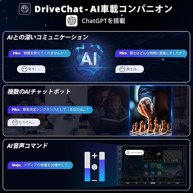 DriveChat AIボイスコンパニオン:ChatGPTがX10のDriveChat AIアシスタントに統合され、車載システムでのAIとの会話や、チャットボットからの専門的なアドバイスが可能。音声コマンドを使って音量調整やトラックスキップも簡単に行えます。