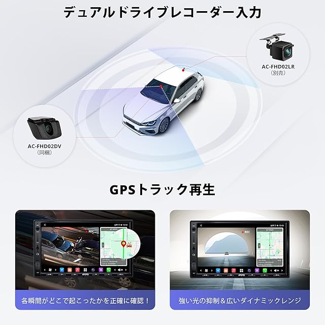 AC-FHD02DVフロントカメラペアリング:FHD 1080Pのリアルタイムフロント録画が可能で、GPSトラック再生を使用してイベントの位置を確認できます。駐車監視機能と衝突を検知して記録するGセンサーを搭載。TrackHUアプリでリアルタイム追跡も可能。