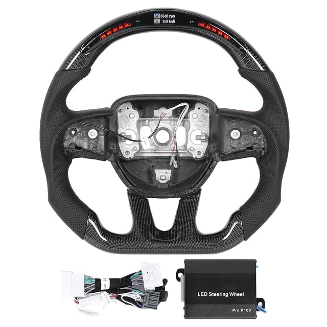 カーボンファイバーLEDステアリングホイールカーステアリングホイールLEDカーボンファイバーLEDシフトライトディスプレイステアリングホイールはチャレンジャー/チャージャーに適していますSRTHELLCAT 2015-2020