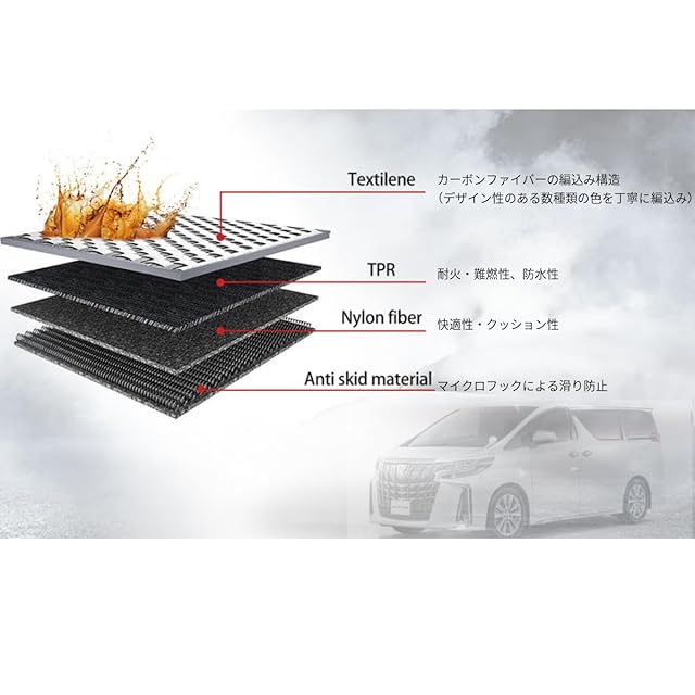 商品構成:フロアマット+ステップマット+セカンドラグマット 高品質のカーボンファイバーを織り込んでいるため、耐久性と耐火性が高く、防水加工。 有害物質不使用のため、安心。高温でも安全、有害物質ゼロ、臭気なし。