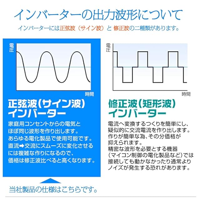✅【高性能の純正弦波インバーター】家庭のAC100V電流波形は規則正しい正弦波形です。ほとんどの電気製品で使用が可能です。精密機器もOK!