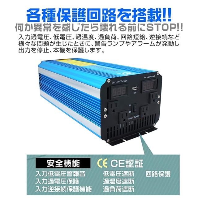 ✅【保護機能】入力低電圧警報・低電圧の遮断・過温度遮断・過負荷遮断・ 短絡遮断 ・入力過電圧保護・入力逆接続保護機能などの保護機能が搭載されております。また、本体内部に冷却ファンが搭載されており、使用中の設備過熱を防止します。