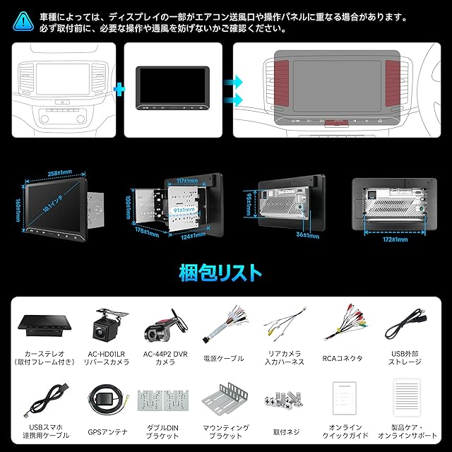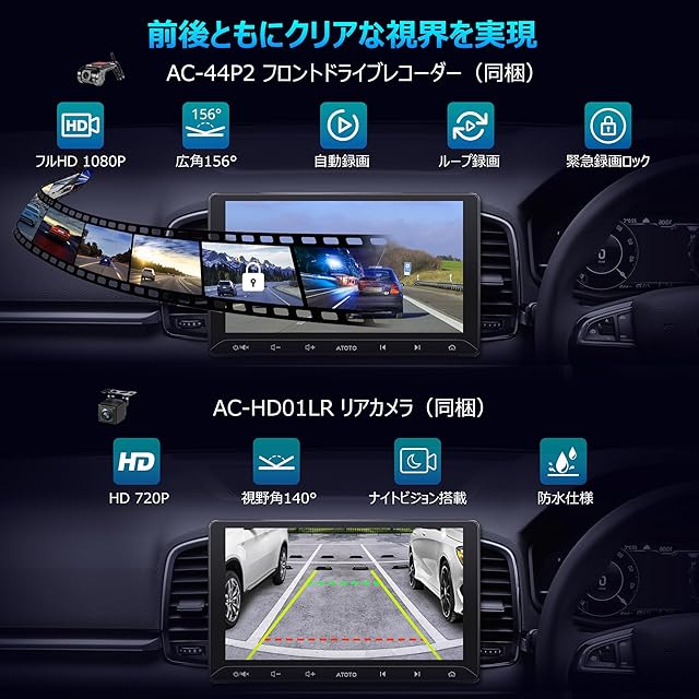 ATOTOLIFE A5L 10インチ2DIN ディスプレイオーディオ、オーディオ一体型Androidナビ、ワイヤレス CarPlay& Android Auto、WiFi対応/USB/Bluetooth テザリング 、1080P録画機能付きフロントカメ、DSP&アンプ 内蔵、AI会話、2分割画面、SWC/FM、バックカメラ、2G+32G、GPS追跡