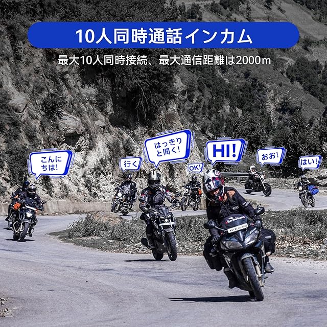 【10人同時会話インカム】GTXインカムはBluetoothコミュニケーションシステムで、Bluetooth接続経由でグループ接続可能で最大10riders接続対応し、10人同時通話できるバイク用インカムである。ソロツアーだけではなく、多人数のチームツーリングにも使用できます。自分だけの時間を楽しめるし、世界ともつながります。