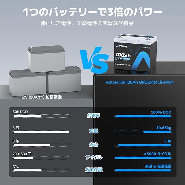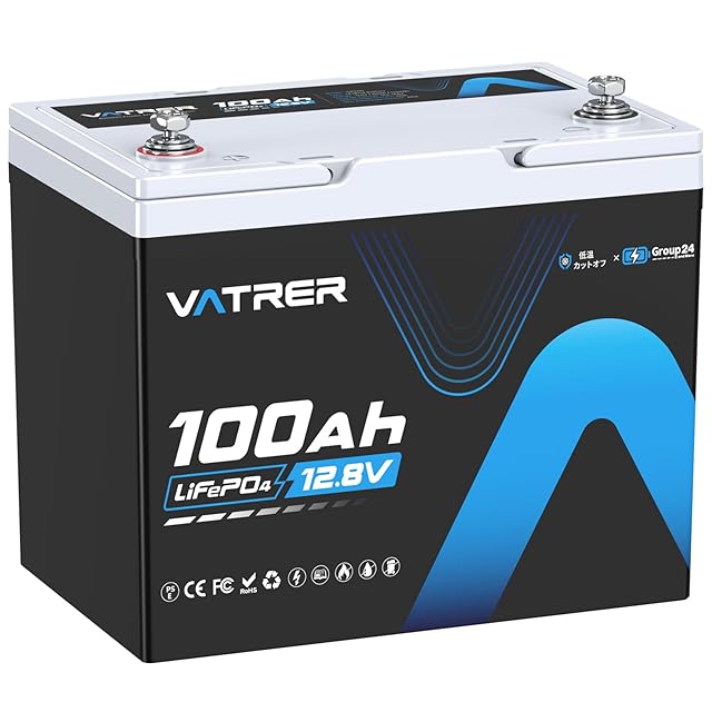 VATRER POWER バトラー LiFePO4 12V100Ah リン酸鉄リチウムイオンバッテリー Group24 ディープサイクルバッテリー 5000回以上サイクル 100A BMS付き 低温カットオフ保護 釣り/キャンピングカー/ソーラーシステム(PSE認証済み)