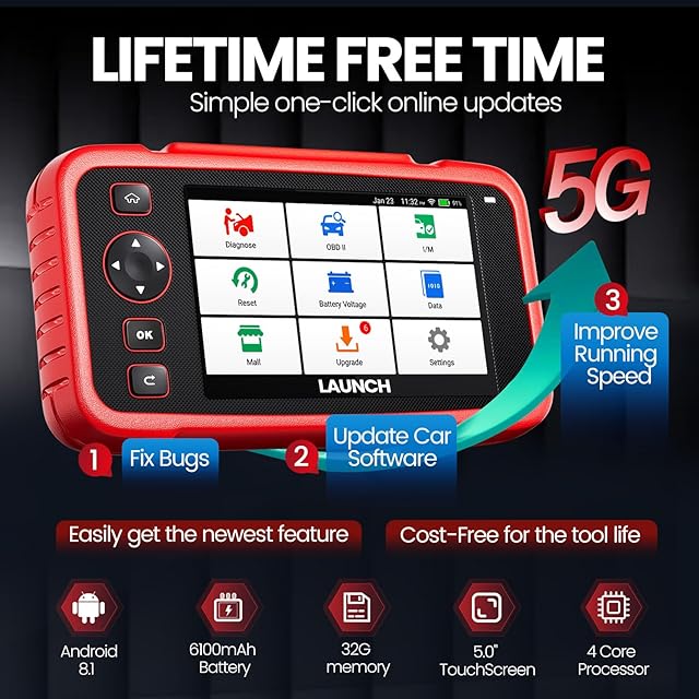 [2025新アップグレードCRP129I V2.0】 LAUNCH 2025新アップグレードCRP129I V2.0診断機は、129I機能と比較して、4つのフリーリセット機能が追加され、現在12種類ものリセット機能があり、より広いの自動車修理&整備シーンに対応できます。 容量は2+16Gから2+32Gに拡大され、オペレーティングシステムはアンドロイド7.0から8.1にアップグレードされ、オペレーティングシステムがより安定し、診断がより正確で便利になりました。