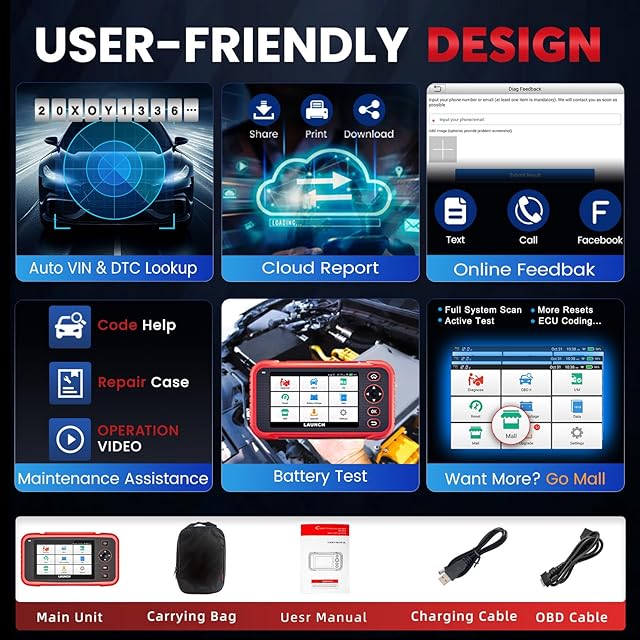 【AUTO VINとヘルスレポート、オンラインフィードバック、Fr.ee Lifetime Updates】Launch CRP129Iは、VINと車両情報にすばやくアクセスでき、VINを検索して1つずつ入力する必要がなくなります。CRP129Iは、オンラインフィードバックによる車両の診断レポートに基づいて問題を迅速に解決します。 Fr.ee Lifetime Updateは、常に最新の診断機能とパフォーマンス向上にアクセスできることを意味します。 機能とパフォーマンスの向上。