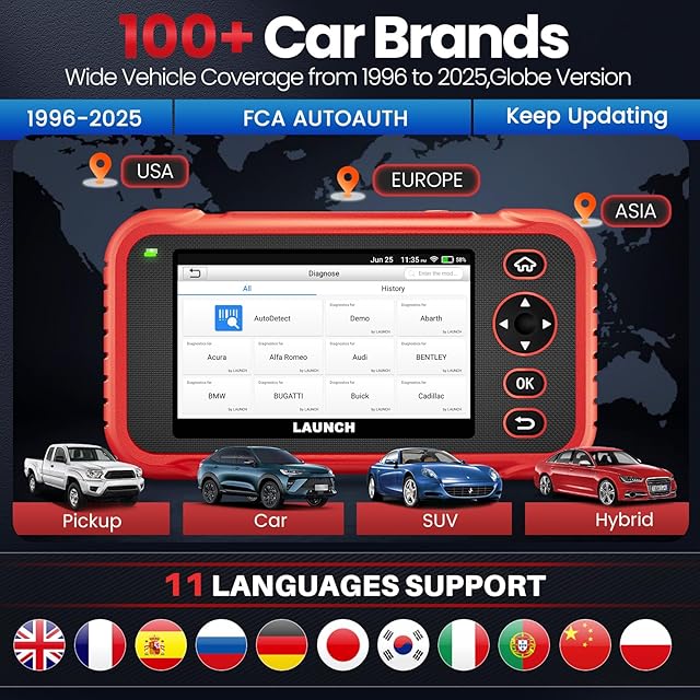 【1996年から2025年までの幅広い車両カバー】CRP129I はディーゼル(12Vのみ)、12V乗用車、ピックアップ、軽トラック、SUV、ガソリン、ミニバン、1996年から2025年まで対応。