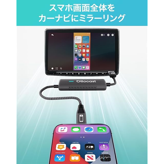 【ミラーリング機能搭載カーアダプター】最新ワイヤレスCarPlayアダプター「Ottocast Mirror Touch」が登場!スマホ画面全体をカーナビにミラーリングすることが可能です。ダッシュボードを使ってスマホの代わりに操作することで、より安全な運転を実現させます。