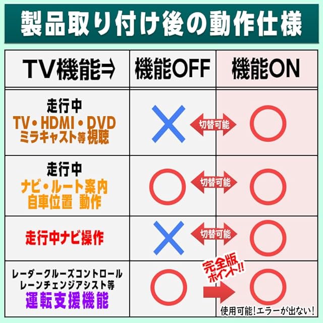 ●走行中でもTV視聴が可能に。 走行中のテレビやDVD視聴、ナビ操作が可能になり、移動中も快適に過ごせます。