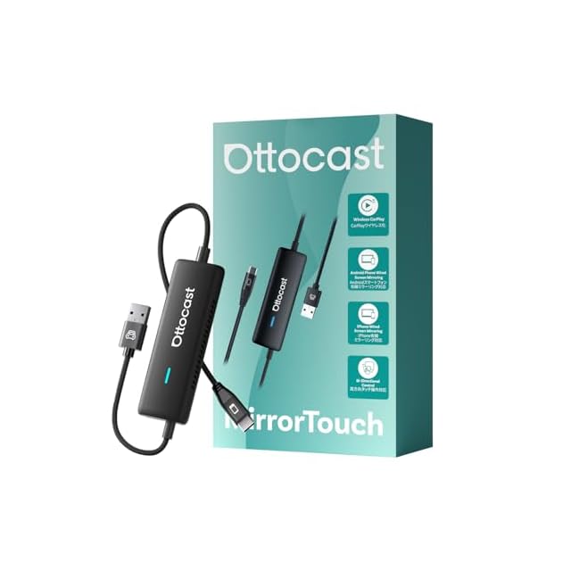 【双方向制御ミラーリングアダプター Mirror Touch新登場】「Ottocast Mirror Touch」は、普段お使いのスマートフォンの画面を、愛車のディスプレイにそのまま映し出せるミラーリング機能搭載カーアダプターです。YouTubeやNetflixの動画、Googleマップでのナビゲーション、SNSチェックまで、すべて車内で楽しめます。