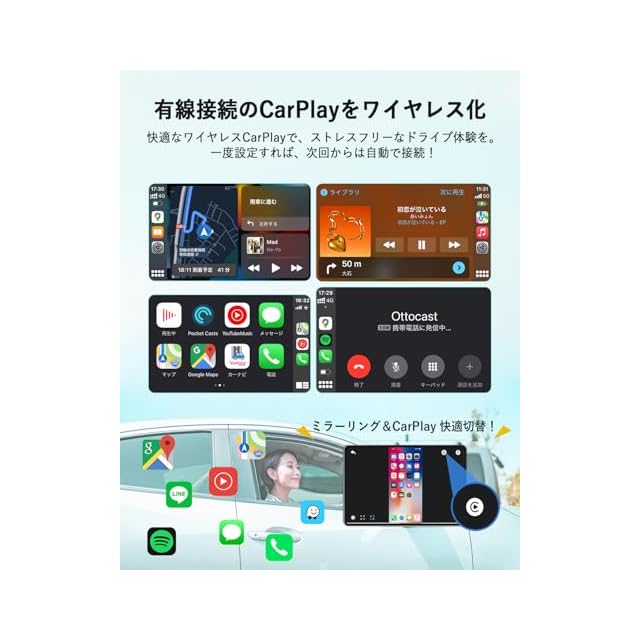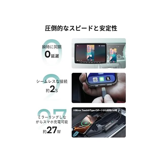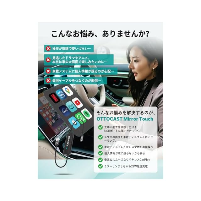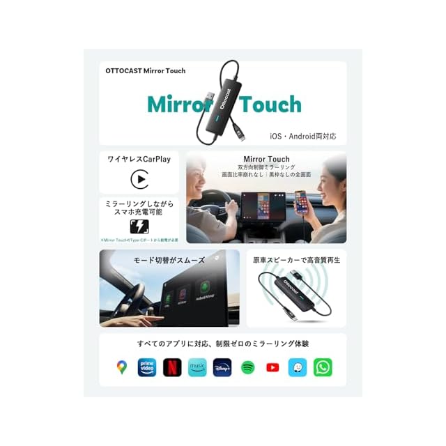 オットキャスト 公式 OTTOCAST Mirror Touch 2025 新型 ミラーリング スマホを大画面に映す 双方向ミラーリング ワイヤレスCarPlay 【技適取得済み品】