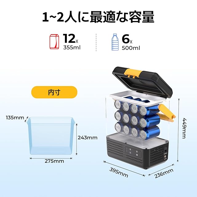 【抜群の携帯性&省スペース設計】 この車載冷蔵庫は、幅約39.5cm×奥行約23.6cm×高さ約44.9cm、重量わずか8.8kgという驚きの軽さとコンパクトさを兼ね備えています。便利なハンドル付きで、片手でラクラク持ち運びが可能!車内での設置場所にも困らず、センターコンソールや助手席、後部座席の間など、限られたスペースにもスムーズに収まり、車内空間を有効活用できます。さらに、冷蔵庫のトップ部分には防滑加工が施されたカップホルダーを搭載。飲み物を置いても滑りにくく、安定感抜群です。キャンプやピクニックといったアウトドアシーンでも安心して使用できる、空間活用と機能性を両立します。