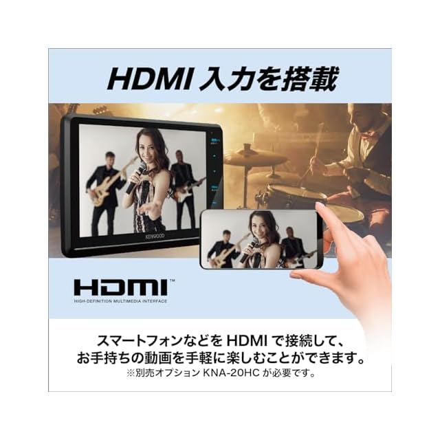HDMI入力搭載。ナビ画面でスマートフォン等の動画を楽しめる。