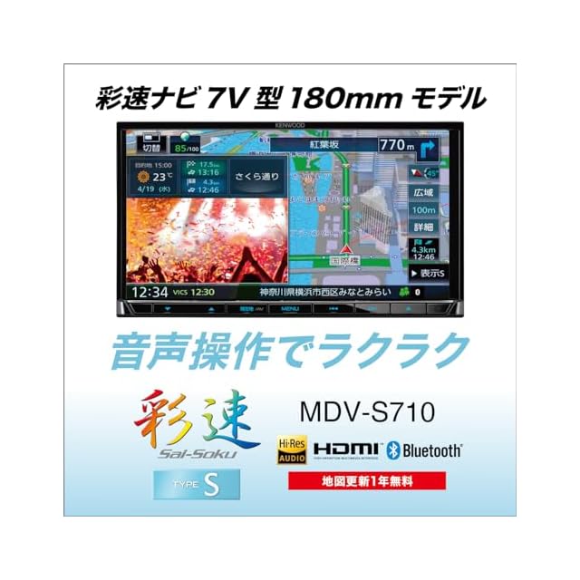 ケンウッド カーナビ 彩速 7インチ MDV-S710 安心の日本製ハイコストパフォーマンスモデル デジタルルームミラー型ドライブレコーダーと連携可能 ブラック KENWOOD