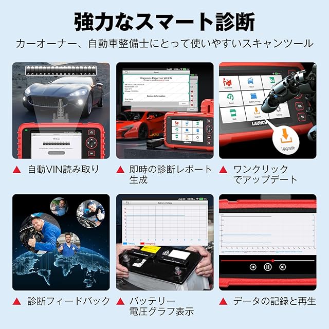 【生涯無料アップデート】CRP129X PLUS OBD2スキャンツールには、生涯無料アップデートサービスが付きます。LAUNCHの開発チームは毎週のように対応車種のソフト更新を発表します。更新は既存のバグ修正、新機能、新車種の追加などもあり、お客様が診断機メニューの「アップデート」をクリックしては常に最新のソフトをご利用できます。ご不明な点などございましたら、お気軽に出品者にご連絡ください。