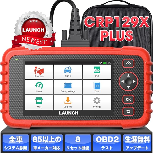 LAUNCH CRP129X Plus obd2 診断機 車 日本語 故障診断機 スキャンツール obdテスター 日本車 輸入車 国産車用 スキャン 診断機 エンジン警告灯消し 8リセット機能 DPF再生 TPMSリセット ABSエア抜き 車フルシステム診断 CRP129X【PLUS版】