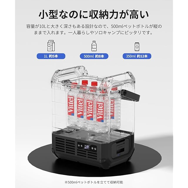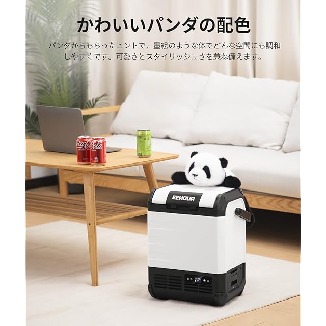【パンダの配色で調和しやすい】パンダをヒントとして白と黒を組み合わせて、屋内でもアウトドアでもインテリアや自然と一体感が生まれます。小さいパンダのようなボディーで十分な収納スペースを有します。10Lの容量で500mlのペットボトルを立てて最大8本、1L牛乳パックを約5本、350mlを約12本保存できます。本体は約7.6kgでどこにでも気軽に持ち運びます。小型で部屋の隙間や車の助手席足元を活用できます。一人暮らしや一人キャンプにピッタリです。