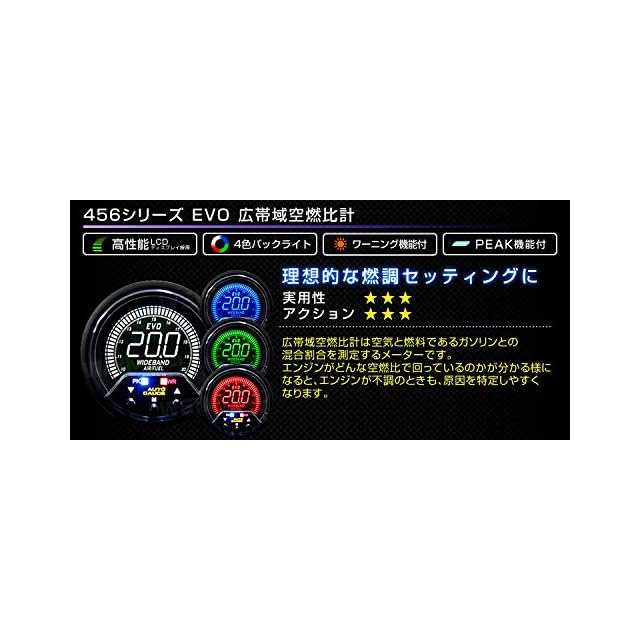 オートゲージ 広帯域空燃比計 60mm 追加メーター 日本製モーター 4色バックライト 456シリーズ