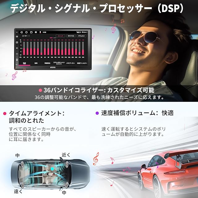 【究極のオーディオ】A6 PFのDSP&EQは、あなたの車を音の楽園に変えます。時間補正で調和のとれたサウンド、36バンドのEQでカスタマイズされたオーディオ、およびSCVC(Speed Compensated Volume Control)を搭載して、最高の音楽体験が楽しめます。最大445W、424W RMSの内蔵アンプは、歪みのない強力なサウンドを保証します。さらに、調整可能なクロスオーバーは、特定の周波数をツイーターやウーファーに指向させ、低音と高音の間のスムーズで自然な移行を提供します。