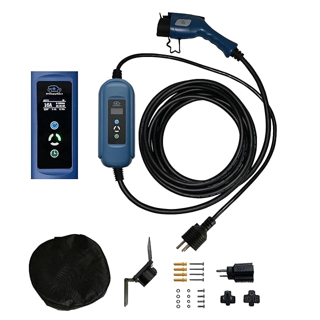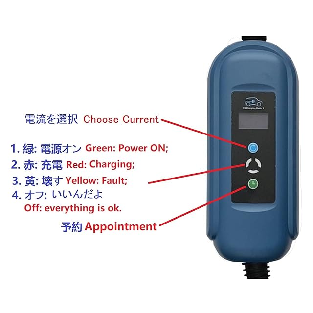 EV充電器 EVSE PHEV SAE J1772 J1772A IL型 ホーム接地20Aコーナーキャップ 100-240V 16A/13A/10A/8A 調整可能 予約可能 LCD 7.6 メーター 電気自動車車の充電器 パナソニック製コンセントに対応