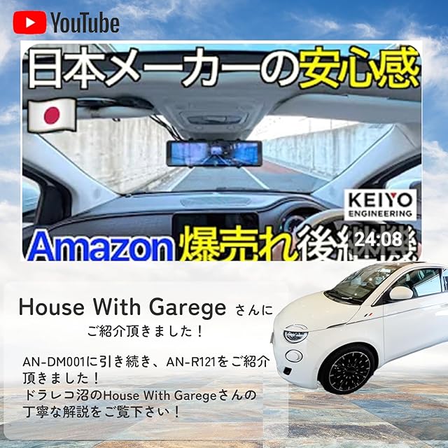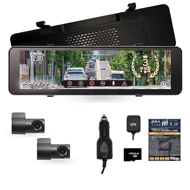 KEIYO【大型デジタルバックミラー+前後WDRカメラドライブレコーダーセット】10.66インチ 純正ミラーカバータイプ 取付簡単 雨ミエ付き AN-R121【公式ショップ】