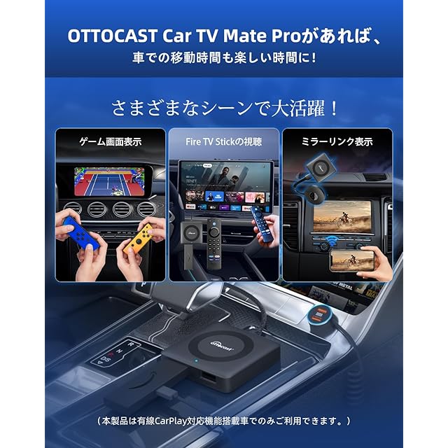 【公式店】Ottocast オットキャストCar TV Mate Pro 新型カーテレビメイトプロ ファイヤーtvスティックアダプター CarPlay無線化 carplay hdmi入力端末 カーナビ ユーチューブを見る 動画配信再生アダプター 2016年以降の純正で有線のカープレイ搭載車に対応 【技適取得済み品】