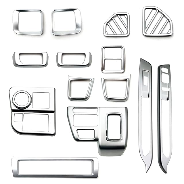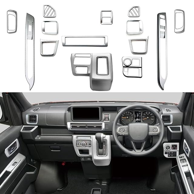 YOFAMO「ダイハツ 新型 アトレー S700V/S710V に対応フロント カップホルダー エアコンベンド送風口 ドアハンドル コンソール調整パネル ハザードランプボタン ウインドリフトリフター カバー フレーム 社外品 ガーニッシュ ドレスアップ(14枚セット) (サテンシルバー)