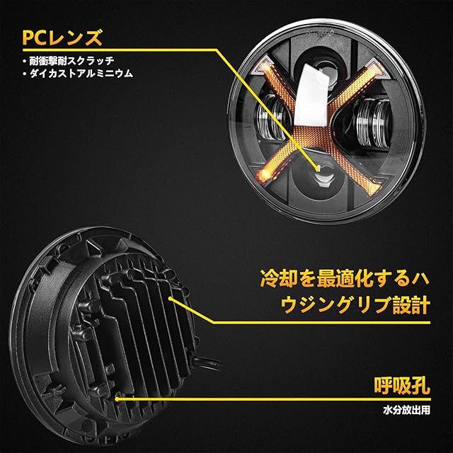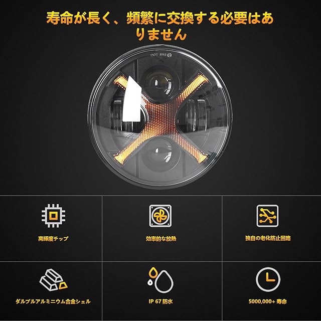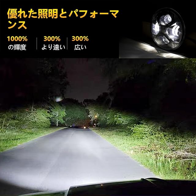 【安定した照度】- Fogocrossの7インチLEDヘッドライトは、最新の高品質チップを使用し、ユニークな耐老化回路、より効果的な放熱設計を採用しており、照度が低下することなく、数年後でもまったく新品のような明るさを維持します。
